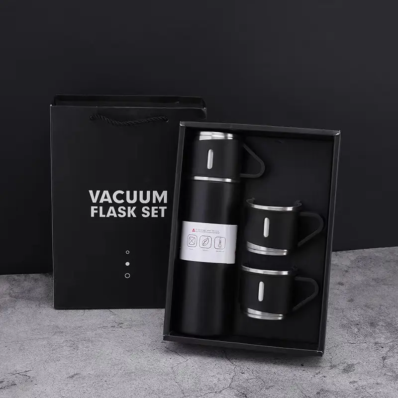 Portable Camping Travel 3 Pcs Set 500ml 304 Stainless Steel Water Vacuum Bottle with Lid Cup with Gift Box