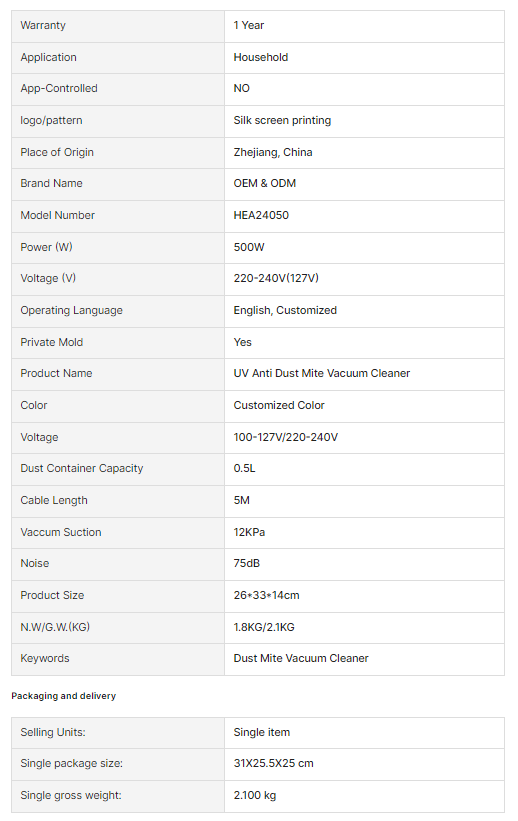 4. Powerful Suction Low Noise Household Electric Mite Control Instrument UV Light Anti Dust Mite Vacuum Cleaner for Bed Mattress
