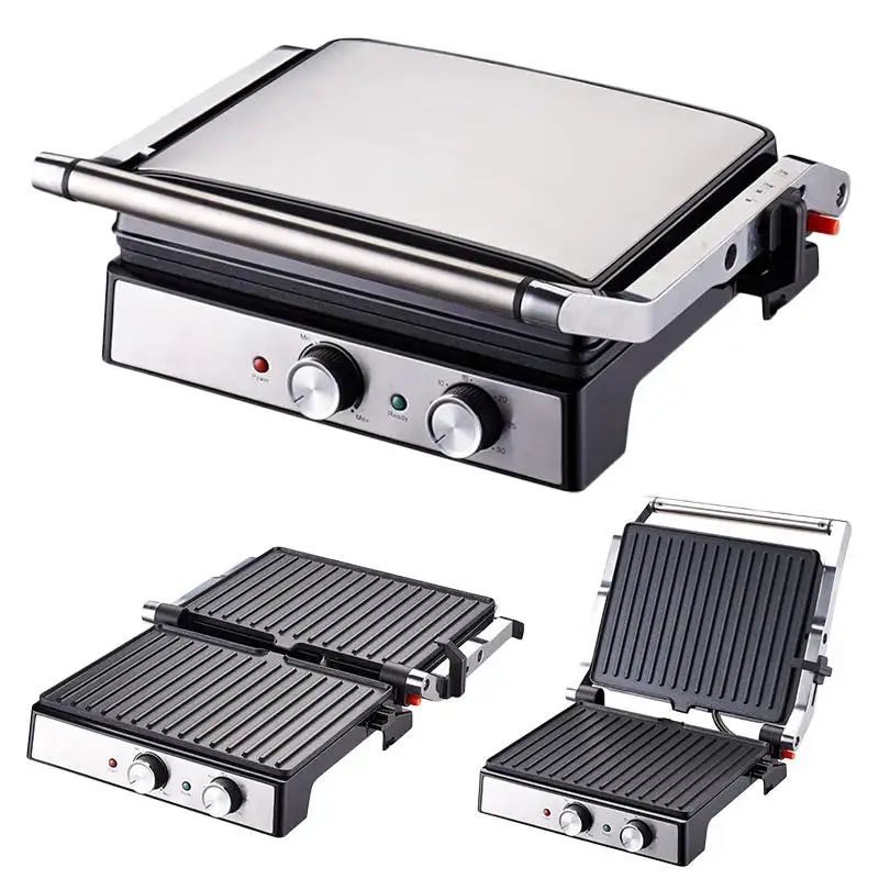 OEM 4 Slice Detachable Smart Timer Stainless Steel Steak Griddles Contact Grill Electric Panini Press Machine for Home Kitchen