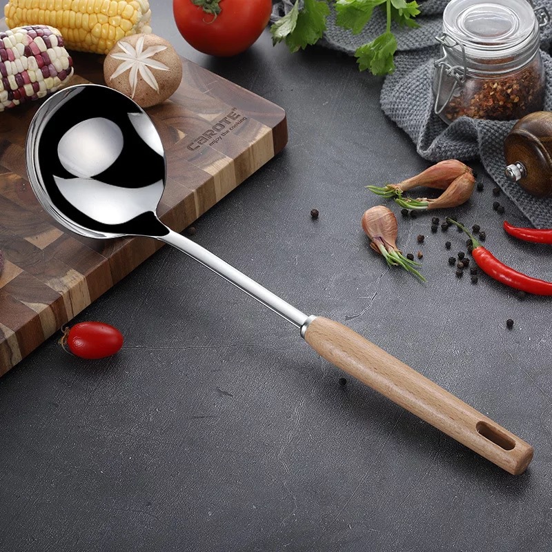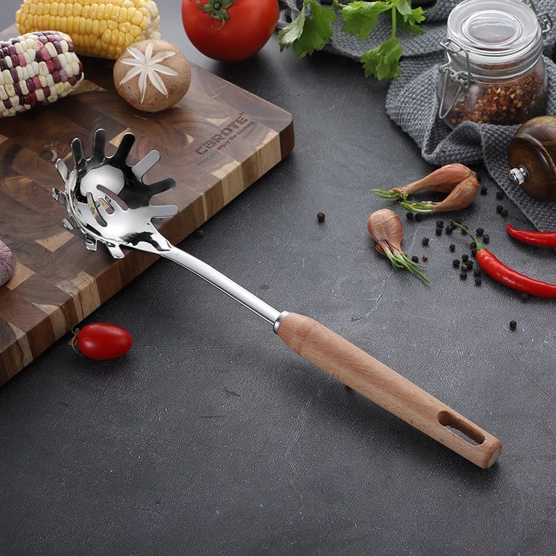 Stainless Steel Spatula Soup Spoon Retro Beech Wood Frying Leaky Spoon Italian Pasta Vegetable Stir Fry Scoop Kitchenware Set