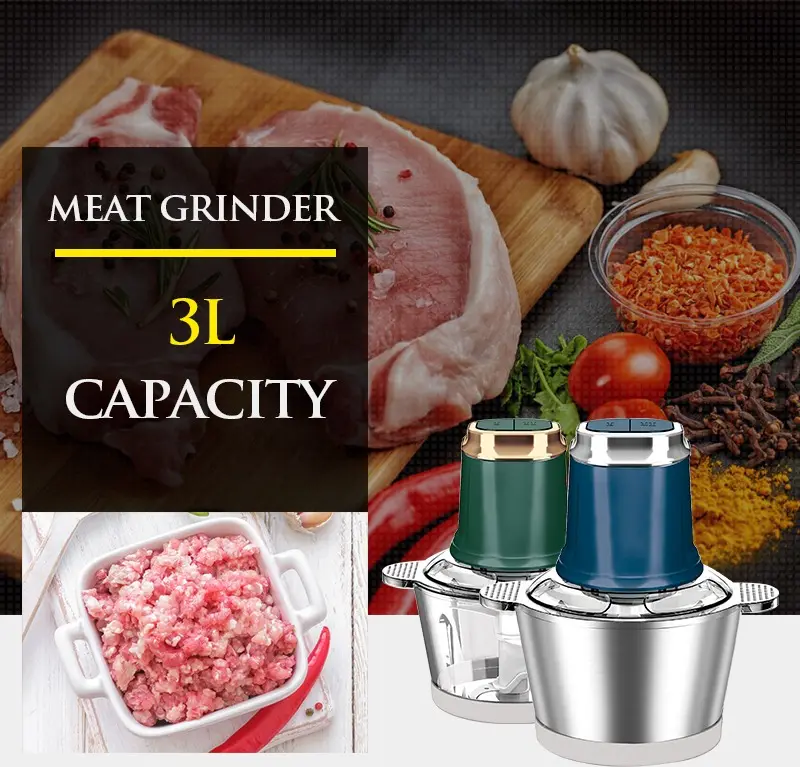 Upgraded 300W Pure Copper Motor Vegetable Chilli Chopper Multifunctional Electric Stainless Steel Meat Grinder and Mixer