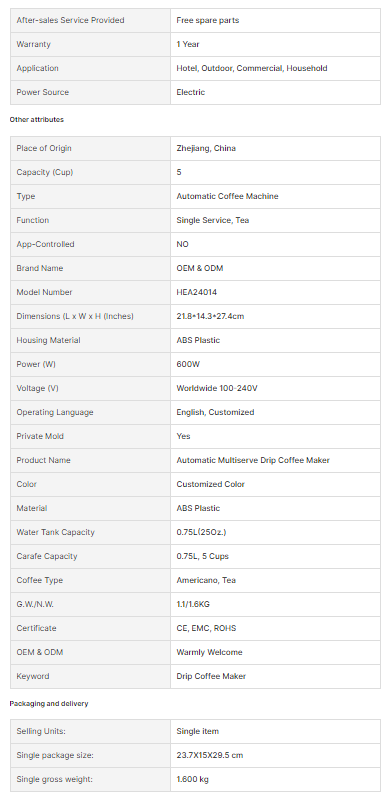 Wholesale 12 Cup Tea Filter Coffee Machine Portable Electric Automatic Multiserve Drip Coffee Maker with Reusable Filter