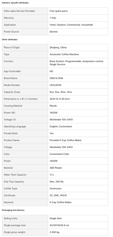 Wholesale 12oz Capsule Pod Automatic American Single Serve Drip Coffee Machine Portable K Cup Coffee Maker for Home Use