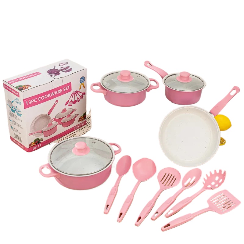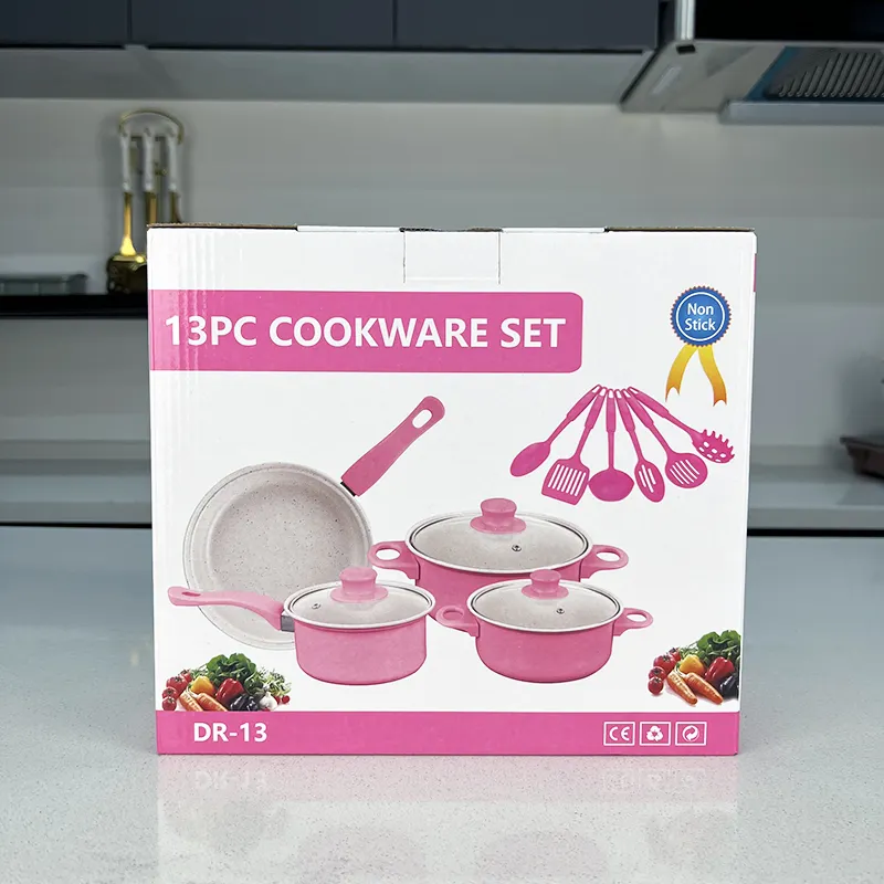 4. Wholesale 13 Pieces Medical Stone Kitchen Cooking Pan Pot Set Non Stick Cookware Sets with Glass Lid Gift Box
