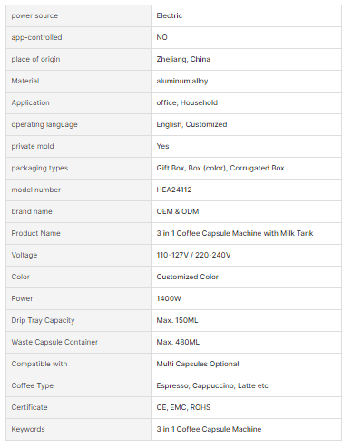 4. Wholesale 1400W Wide Capsule Selection 20 Bar Italian Espresso Coffee Maker 3 in 1 Coffee Capsule Machine with Milk Tank