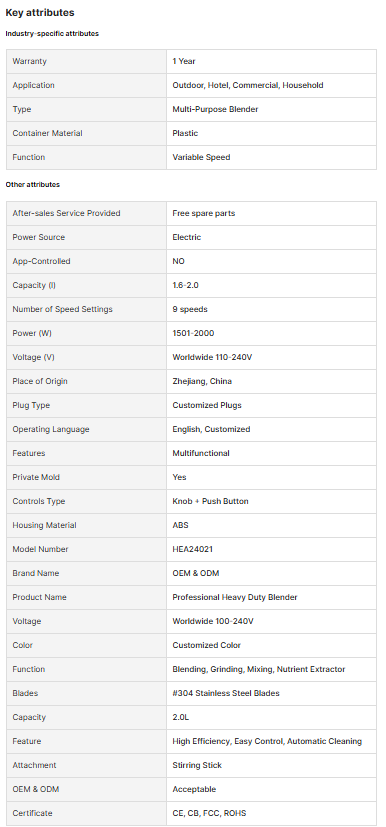 3. Wholesale 2000W Pure Copper Motor 2L Fruit Smoothie Maker Commercial Blenders Machine Professional Heavy Duty Blender
