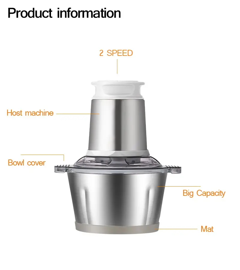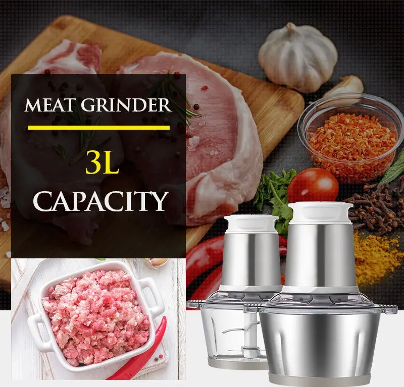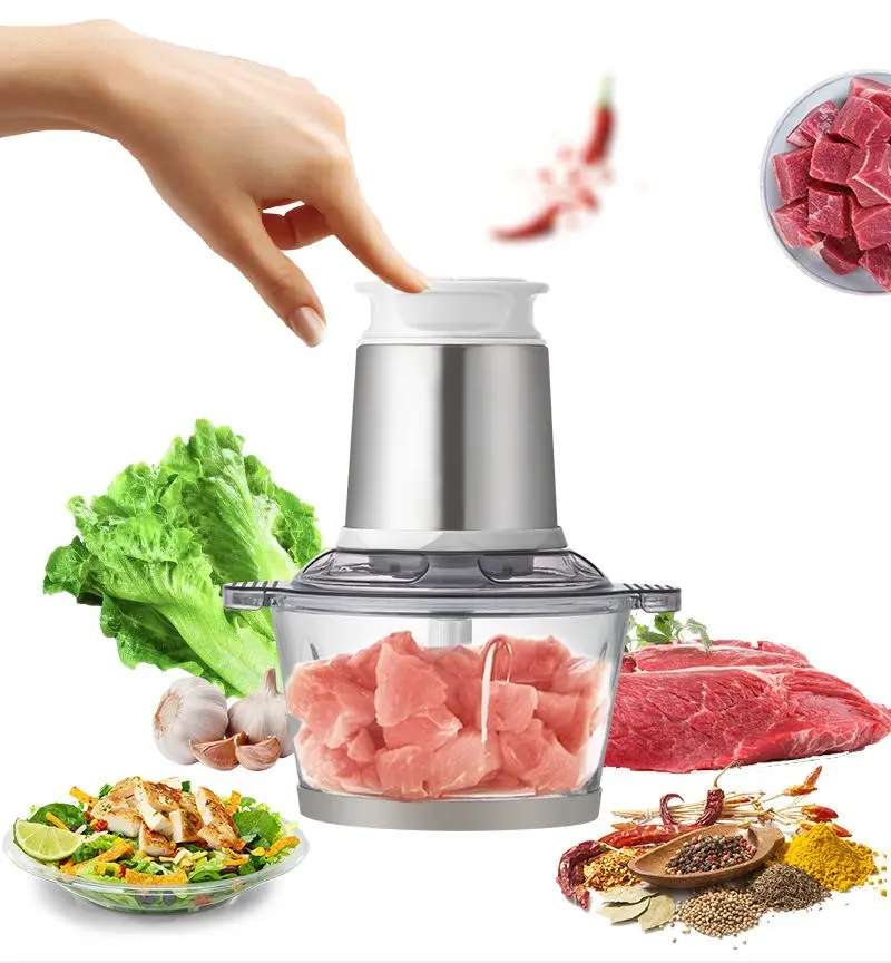 Wholesale 2L 3L Multifunctional Glass Bowl Electric Foot Vegetable Chopper Quick Stainless Steel Meat Grinder Meat Cutter