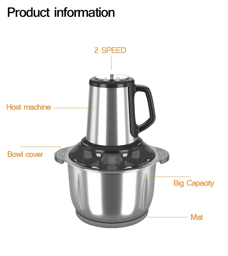 4. Wholesale 5L Large Capacity Fufu Blender Yam Pounding Meat Chopper Stainless Steel Tabletop Electric Food Grinder for Kitchen
