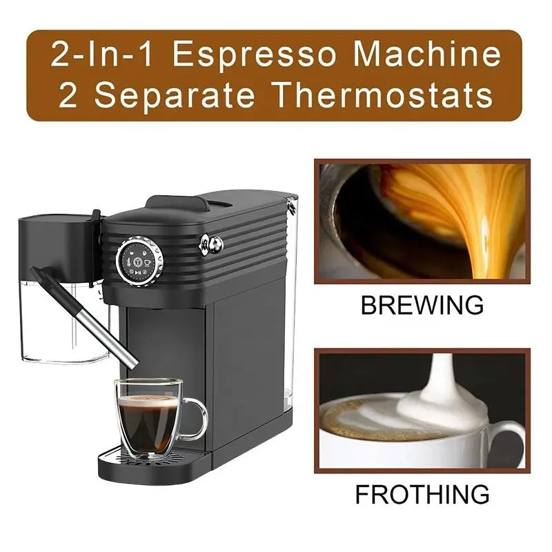 4. Wholesale DG NS Capsule Espresso Coffee Makers 2 in 1 Electric Portable Capsule Coffee Maker Machine with Milk Frother