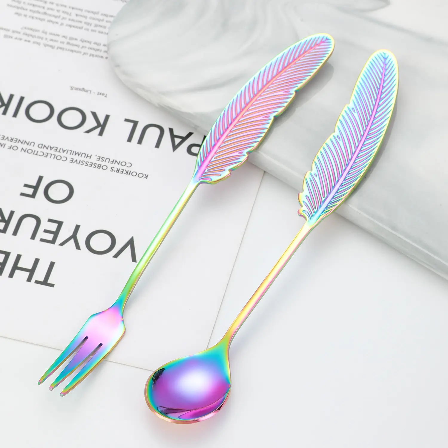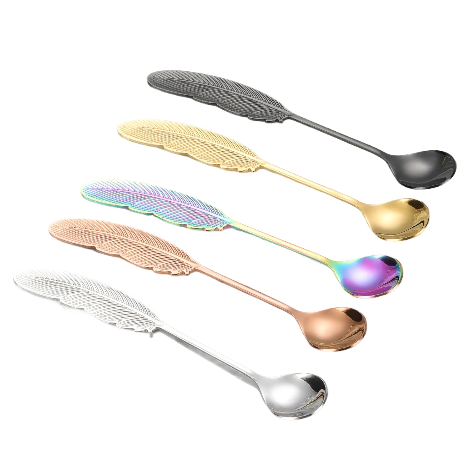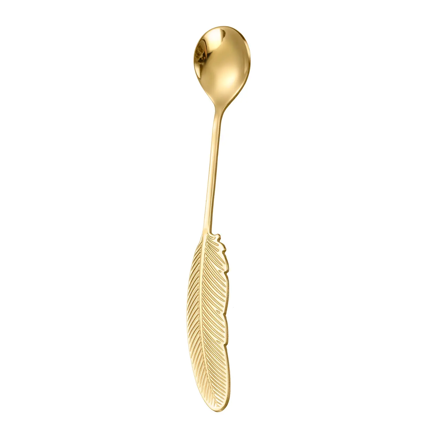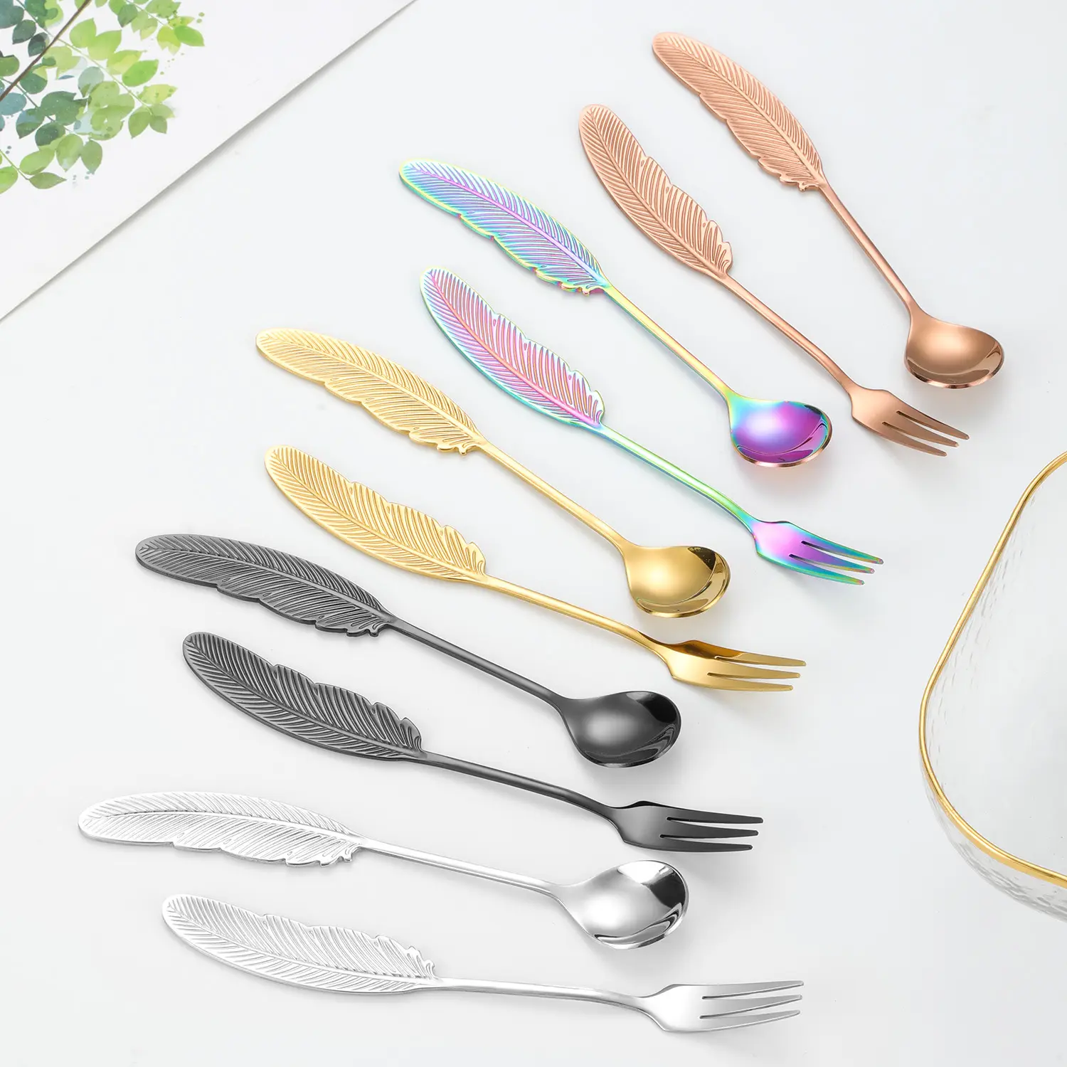 Wholesale Factory Feather Shape Spoon Metal 304 Stainless Steel Coffee Dessert Spoon Fruit Fork for Home Hotel Party