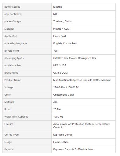 Wholesale Household 20 Bar Pump Electric Italian Coffee Maker 10 in 1 Multifunctional Espresso Capsule Coffee Machine
