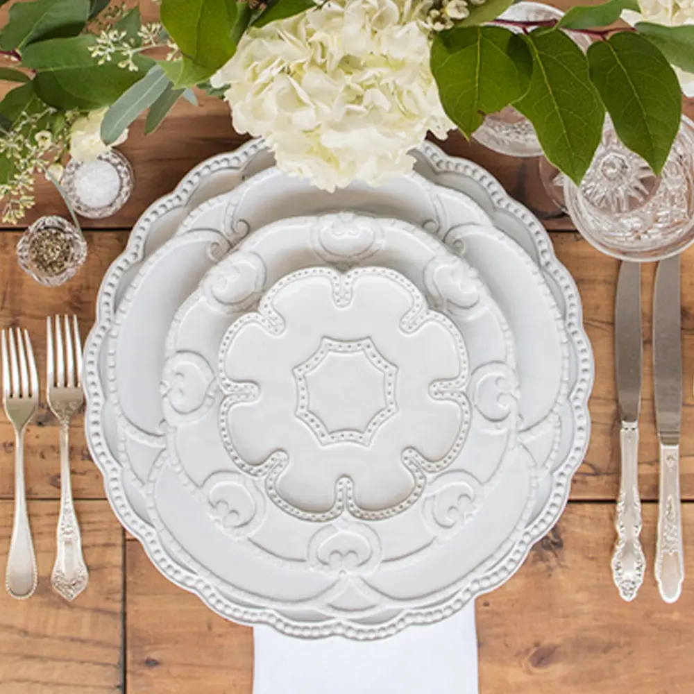 Wholesale Retro Flower White Porcelain Plate Embossed Dinnerware Wedding Ceramic Dinner Set