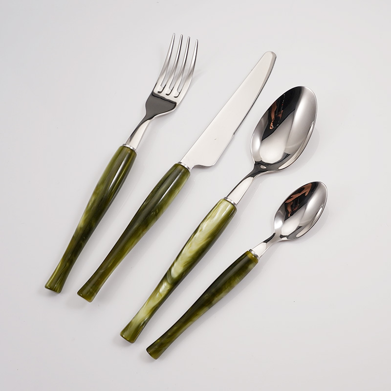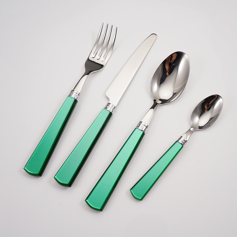 Cathylin Green Handle Elegant Flatware China Manufacturer 4 PCS Spoon Fork Knife Stainless Steel Cutlery Set for Event Wedding