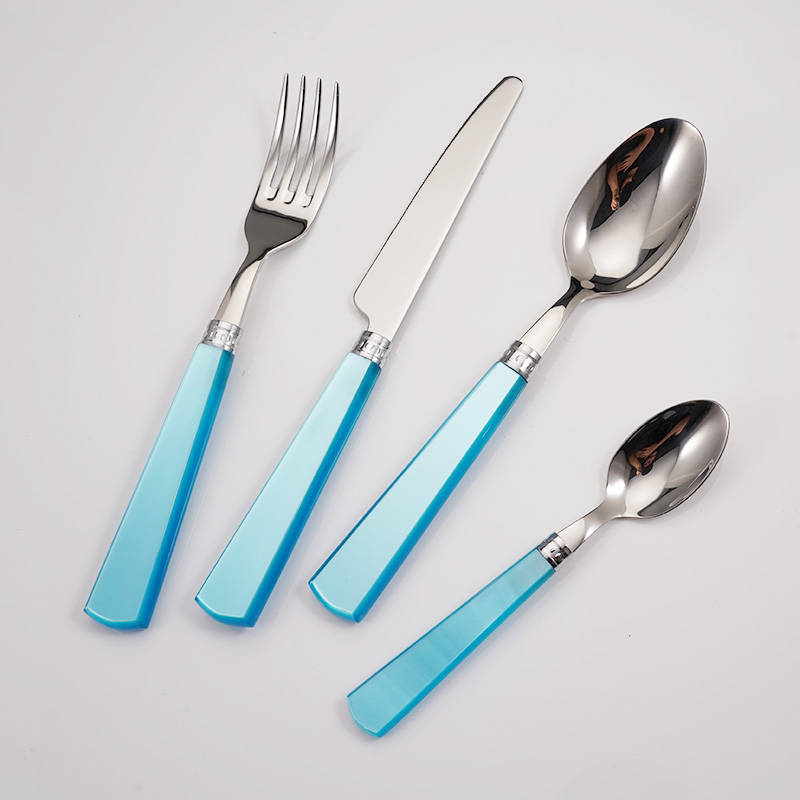 Cathylin Blue Handle Novel Flatware China Manufacturer 4 PCS Spoon Fork Knife Stainless Steel Cutlery Set for Event Wedding