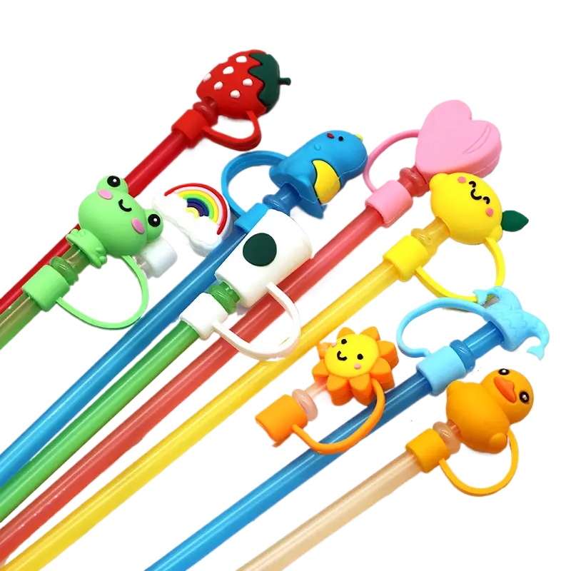 Cute Animals Straw Cover Reusable PVC Silicone Straw Toppers Silicone Drinking Straws Cover