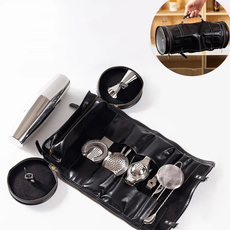 14PCS Bartending Kit Silver Metal 304 Stainless Steel Bar Cocktail Shaker Set with Black Portable Bag