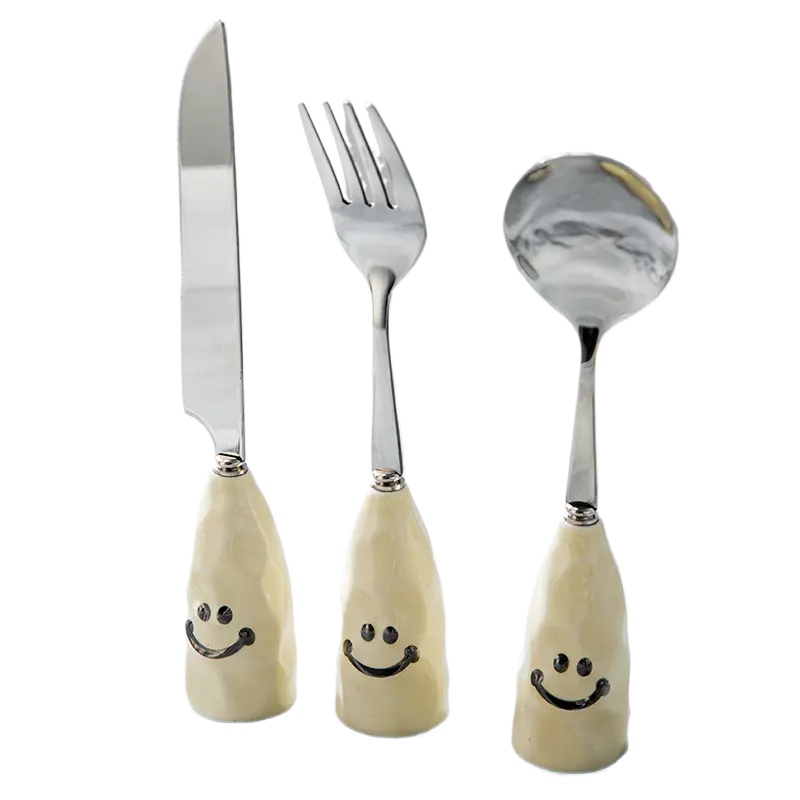 Creative Cute Stainless Steel Fork 304 Fork Cartoon Soup Dining Spoon Ceramic Handle Cute Western Food Spoon
