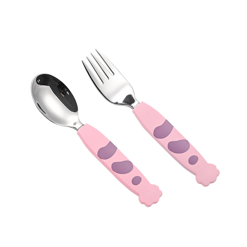 Food Creative 304 Stainless Steel Cat Claw Children’s Silicone Chopsticks Spoons Forks Flatware Set for Baby