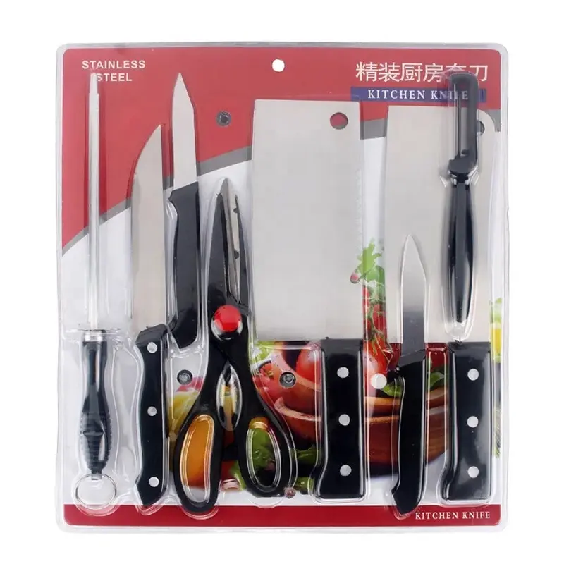 Wholesale 4 piece 8 PCS Multifunctional Stainless Steel Black Plastic Handle Scissors Kitchen Knife Set