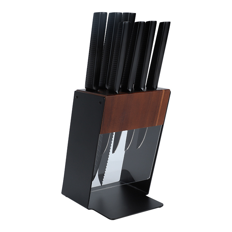 10 PCS Complete Set Cutting Tools Stainless Steel Kitchen Knife Set with Solid Wood Knife Holder for Home Use