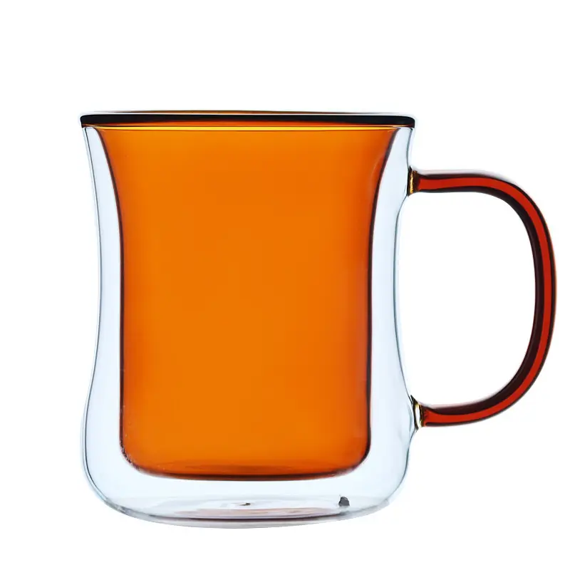 Wholesale Customized Logo Clear Colorful Insulated Borosilicate Double Wall Glass Coffee Tea Cups Mugs with Handle
