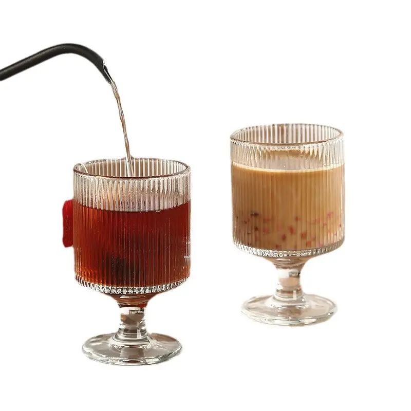 Glass Vertical Patterned High Footed Milk Tea Dessert Cup Lace Ice Cream Juice Glass Red Wine Cup