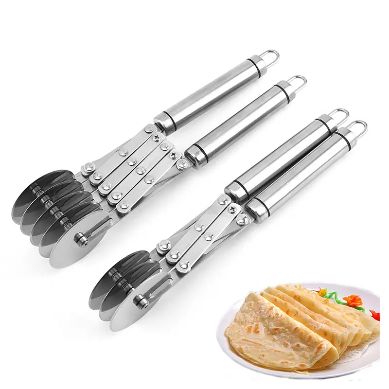 Stainless Steel 3 5 Wheels Roller Pizza Dough Pastry Cutter with Comfortable Hanging Handle