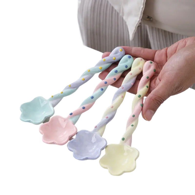 Hand Made Cute Style Cartoon Spoon Stock Double Color Fairy Stick Ceramic Soup Spoon for Kids Girls