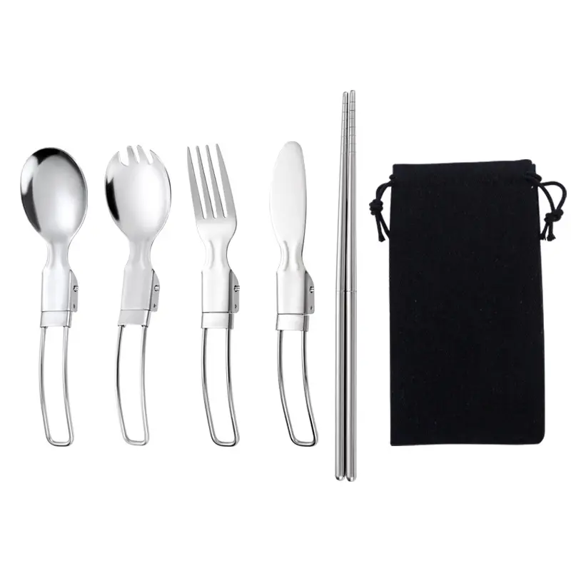5PCS Portable Travel Foldable Flatware Set 304 Stainless Steel Spoon Fork Knife Spork Chopsticks Cutlery in Bag